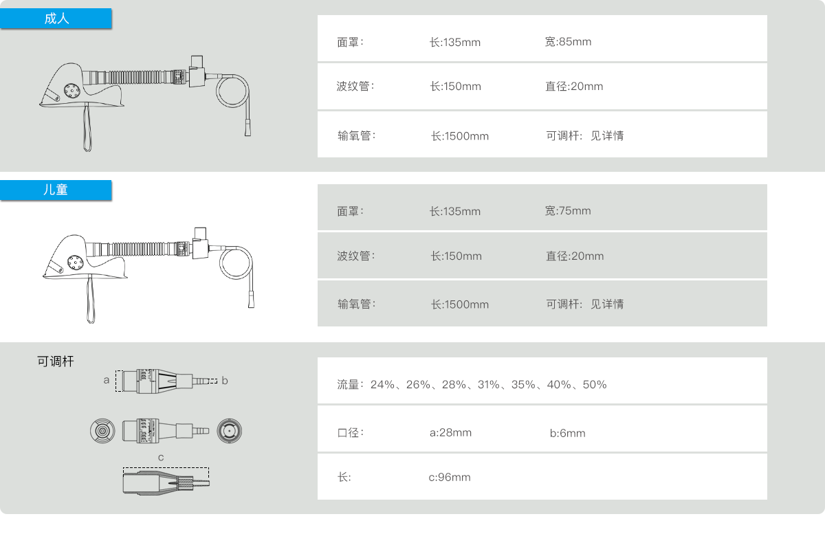2.The product comprises a mask, oxygen tubing and